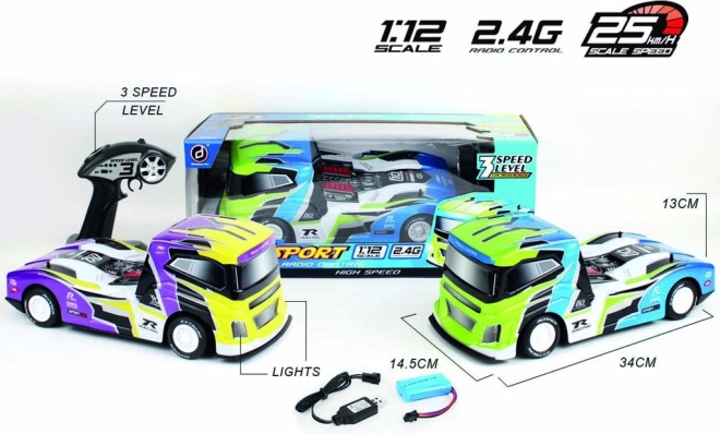 Uživajte v dinamični vožnji z R/C dirkalnim vlačilcem, ki navduši otroke in odrasle. Zahvaljujoč trem nastavljivim hitrostim (8 / 16 / 25 km/h) boste zmogljivost zlahka prilagodili začetnikom in naprednim. Sprednje LED luči in realistični detajli povečajo pristnost, medtem ko absorpcijski blažilniki na obeh oseh zagotavljajo gladko vožnjo tudi po slabšem terenu.