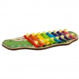 Ksilofončki so izdelani iz kombinacije lesa in kovine. Dovolj je nežen udarec s palčko po ploščici in zasliši se čist ton, katerega glasnost je odvisna od moči udarca. Žive in tople barve vabijo k igri in so odlične tudi za učenje barv.