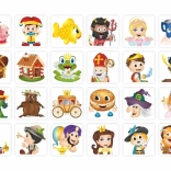 Barviti motivi princesk, vitezov, zmajev in drugih pravljičnih likov otroke navdušijo in olajšajo iskanje parov.