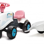 Poganjalni traktor Falk Rainbow v beli barvi z odstranljivo prikolico je sanje vsakega malega kmeta. Izdelan je natančno z poudarkom na vsakem detajlu in je idealen za otroke od 12 mesecev. Vozilo ima plastična kolesa in konstrukcijo iz kakovostnih materialov.