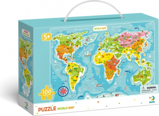 Odkrijte svet skozi igro z otroško sestavljanko DODO. Barvit zemljevid sveta z imeni v angleščini motivira otroke k spoznavanju držav in kontinentov ter hkrati naravno bogati besedni zaklad. Zahvaljujoč 100 trdnim koščkom je sestavljanje zabavno in ravno prav zahtevno.