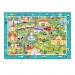 Zabavna izobraževalna sestavljanka z motivom mesta, ki po sestavljanju ponudi interaktivno igro iskanja. Otroci bodo odkrili stavbe, prevozna sredstva in mestne elemente, urili besedišče, spomin in koncentracijo ter uživali v skupni zabavi. Vsebuje 80 koščkov, velikost po sestavi 45 × 31 cm, idealno za otroke od 5 let.
