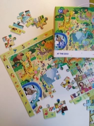 Ta barvita sestavljanka z motivi živali iz živalskega vrta otrokom ne ponuja le veselja ob sestavljanju, temveč tudi dodatno dejavnost: po dokončanju slike lahko igrajo igro »Najdi in poišči« ter odkrivajo položaj posameznih živali. Idealno za razvoj pozornosti, koordinacije oko–roka in besednega zaklada.