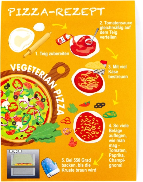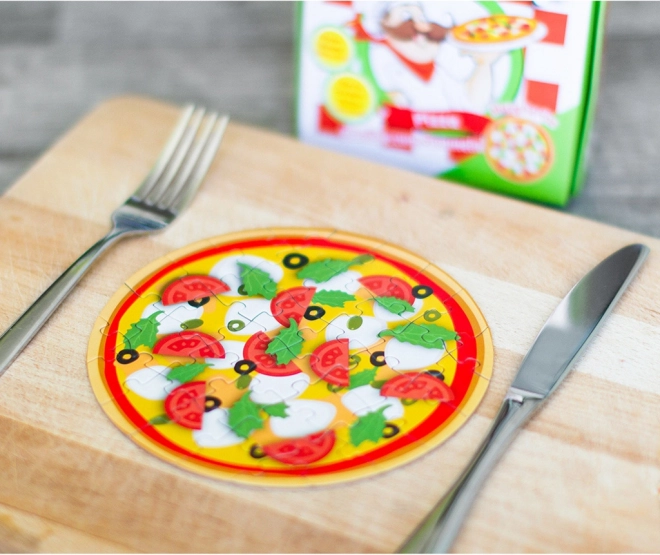 Ta izvirna in zabavna sestavljanka s pico prinaša različne motive, kot so z gobami, vegetarijanska, mehiška, s feferoni in druge priljubljene okuse. Vsako pakiranje vsebuje: