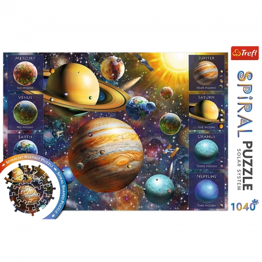 Odkrijte zabavo z izvirnimi sestavljankami, katerih koščki po sestavljanju ustvarijo edinstveno spiralno obliko. 1040-delna sestavljanka z motivom Sončnega sistema ponuja privlačen dizajn, kakovostno izdelavo in udobno sestavljanje zahvaljujoč kalandriranemu papirju, ki zmanjšuje bleščanje. Odlično darilo za ljubitelje vesolja in zahtevnejše sestavljavce.