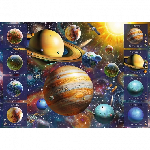 Po sestavljanju nastane podroben motiv dimenzij 68,3 × 48 cm, na katerem izstopajo planeti in vesoljski detajli. Sestavljanka je izdelana na Poljskem iz okolju prijaznih materialov in kakovostnega, trdnega kartona – pravo veselje za vse, ki imajo radi vesolje in nekonvencionalen dizajn.