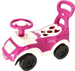 Večnamenski poganjalnik 4v1 znamke Pilsan združuje vožnjo, hojico, potiskalnik in izobraževalni vstavljalnik oblik. Ponuja mehanski hupa, odstranljiv naslon za hrbet, odlagalni prostor pod sedežem ter varne, neškodljive materiale za veselo in varno igro.