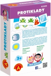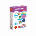 Zabavna izobraževalna igra za najmlajše, ki otroke uči razumeti nasprotja s pomočjo velikih dvodelnih kartic. Zaradi edinstvene oblike spajanja otroci takoj prepoznajo, ali so našli pravilni par. Razvija besedni zaklad, logično razmišljanje, pozornost in fino motoriko.