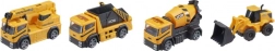 Set vsebuje štiri različna gradbena vozila: mešalec, tovornjak, bager in avto z žerjavom, vsako z realističnimi detajli in funkcijami za povečanje igralnega doživetja.
