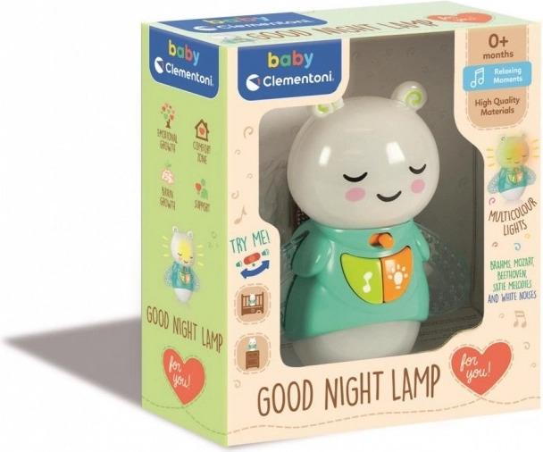 Prisrčna nočna lučka BABY CLEMENTONI z motivom muhe prinaša otrokom mirno uspavanje in nežno, pomirjujočo osvetlitev. Zahvaljujoč varni plastični zasnovi in napajanju na 3× AAA baterije je idealna za otroško sobo in za na pot. Otroci jo bodo vzljubili kot zvestega nočnega spremljevalca.