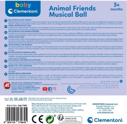 Glasbena žoga BABY CLEMENTONI je zasnovana tako, da otroke naravno motivira k raziskovanju. Živalski zvoki in prijetne melodije spodbujajo slušno zaznavanje, medtem ko mehki materiali z različnimi teksturami in barvite zanke razvijajo tip in fino motoriko. Zaradi kompaktne velikosti Ø 15 cm žoga dobro sede tudi v roke najmlajših.