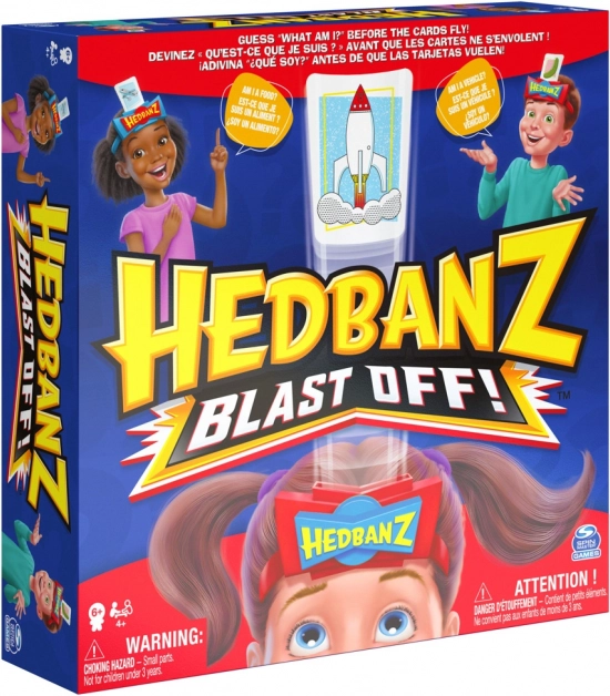 Hedbanz Blast Off! je idealen za družinske večere in otroške zabave. Nastavljivi naglavni trakovi ustrezajo tako manjšim kot večjim igralcem, slikovne karte pa igro naredijo jezikovno neodvisno. Vsak igralec ima svoje žetone in poskuša uganiti v prvem poskusu.