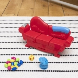 Postavi priboljške na kavč, pritisni gumb in opazuj, kaj se zgodi. Nepričakovan mehanizem vsaki partiji doda napetost in veliko smeha.