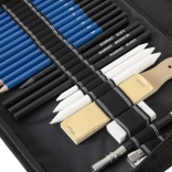 Skicirni set je lepo urejen v zapiralnem etuiju, ki zagotavlja, da bodo vsa orodja na svojem mestu in lahko prenosljiva. Idealen za začetnike in profesionalne umetnike.
