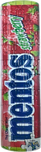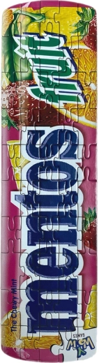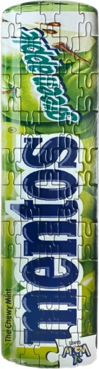 Škatlica v dizajnu priljubljenih bonbonov MENTOS. Sestavljanka ima 50 delov, škatlica in sama sestavljanka pa sta izdelani iz reciklabilnih materialov. Izdelek je primeren za otroke od 6 let dalje.