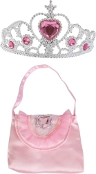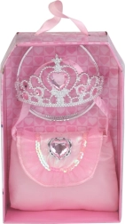 Ta nežen modni komplet spremeni vsakodnevno igro v pravljično avanturo. Krona doda kraljevski sijaj vsaki preobleki, torbica pa shrani vse male zaklade, ki jih potrebujete na poti v kraljestvo domišljije.