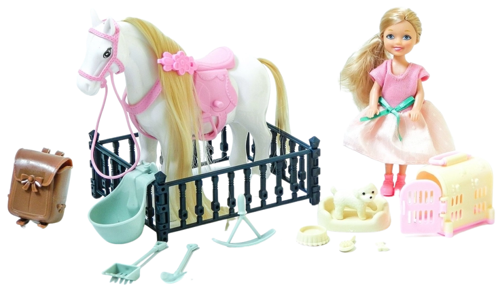 Ta kmečki komplet prinaša otrokom svet domačih živali naravnost v otroško sobo. Zaradi kombinacije konjička, punčke in kužka si lahko otroci ustvarjajo svoje zgodbe, se učijo skrbeti za živali ter razvijajo socialne veščine.