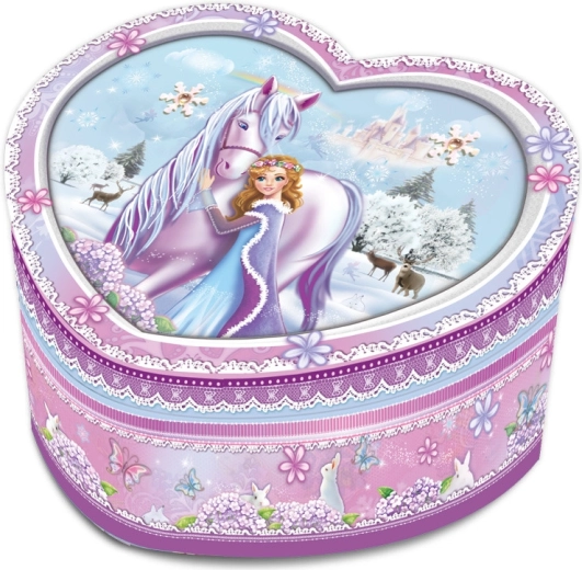 Glasbena škatlica za nakit v obliki srca z enorogom