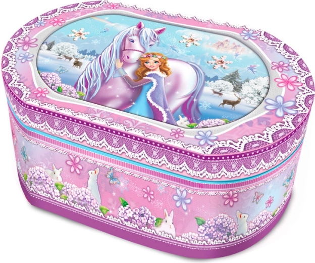 Glasbena škatlica za nakit z samorogom in ogledalcem
