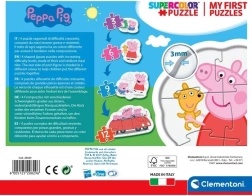 Igrača je namenjena otrokom od 2. leta, da lahko varno spoznajo svet sestavljank s pomočjo svojih najljubših likov iz Pepine družine. Ta paket vsebuje štiri različne sestavljanke z naraščajočo zahtevnostjo, od 3 do 12 koščkov.