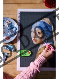 Diamantno slikanje GRAFIX prinaša pomirjujočo ustvarjalno izkušnjo. Z aplikatorjem in voskom lepite kamenček za kamenčkom na označena mesta na platnu z lepilno plastjo ter postopoma ustvarite sijočo sliko ikoničnega motiva Dekle z biserom v velikosti 40 × 50 cm.