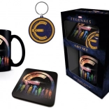 Iščete popolno darilo za oboževalca Eternals? Ta darilni set združuje praktično vsakodnevno rabo z atraktivnim dizajnom. Keramična skodelica s prostornino 310 ml je odlična za kavo ali čaj, gumijast obesek dopolni ključe ali nahrbtnik, plutast podstavek pa zaščiti mizo pred madeži.