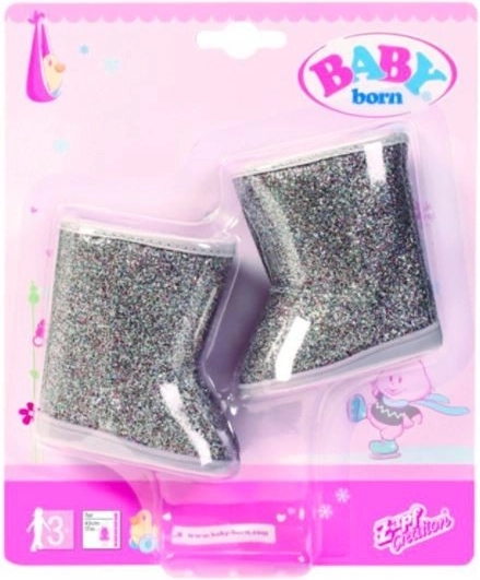 Srebrni bleščeči gležnjarji BABY BORN za punčke 43 cm. Trpežni, enostavni za obuvanje, idealni od 3 let. Slogoven dodatek za kreativno igranje.