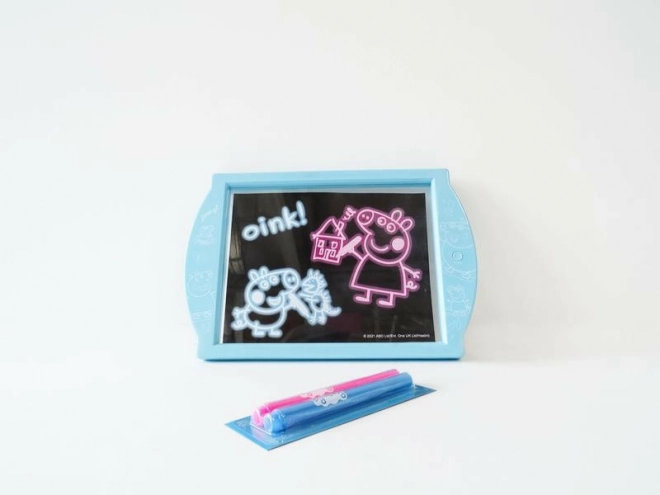 Narišite sliko na svojo svetlečo tablo z dvema neonskima flomastroma in jo nato vključite, da vidite, kako vaša slika zasije in se spreminja pred vašimi očmi! Ko želite biti ustvarjalni, sliko preprosto obrišite in začnite znova.