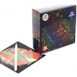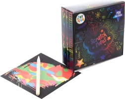 Set vsebuje vse, kar potrebujete za raziskovanje sveta praskanja. Vsaka slika je velikosti 9x9 cm in omogoča ustvarjanje čudovitih motivov zgolj s preprostim praskanjem. Set je opremljen z lesenim praskalnim peresom, ki vam pomaga razkriti barvno plast pod črno površino. Vse je skrbno zapakirano v škatli, ki zlahka sprejme vse komponente.
