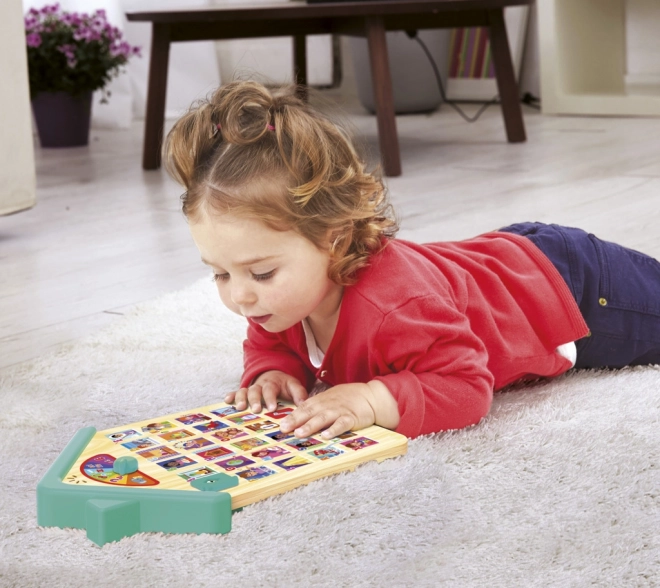 Učenje je razdeljeno na 6 načinov – od prepoznavanja črk, preko iskanja slik do enostavnih kvizov. Kakovostna lesena izvedba podpira varno igro in prijeten taktilni občutek. Idealna izobraževalna igrača za otroke od 2 let, ki razvija fino motoriko, logično razmišljanje in besedišče.