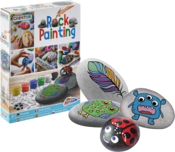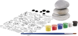 Ta ustvarjalni komplet spremeni navadne kamenčke v vesele pošastke, ribice, obraze in druge izvirne dekoracije. Dovolj je nalepiti motiv z nalepk, dodati premikajoča se očesca in okrasiti z šestimi živahnimi barvami. Zahvaljujoč priloženemu čopiču in gladkim prodnikom bodo otroci ustvarili čudovite izdelke tudi brez predhodnih izkušenj.