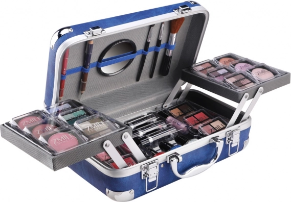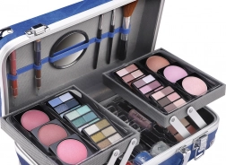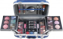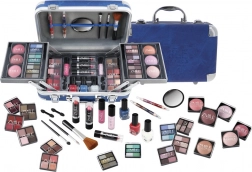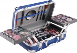 Kozmetični kovček z aluminijastimi vogali Travel Blue z integriranim ogledalcem – skupaj 84 kosov dodatkov.