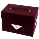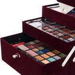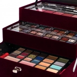 Kozmetični sametni kovček Beauty Case Velvety – temno vinsko rdeč samet – skupaj 74 kosov dodatkov. Vsebuje 32× senčil za oči v 4 kompaktnih paletah, 5× rdečilo za lica, 3× senčila za obrvi, 1× vosek za obrvi, 4× kremna senčila za oči, 4× bleščečo kremo, 2× osnovna senčila za oči, 8× korektor, 2× glos za ustnice, 1× šminko, 1× maskaro, 1× dvostranski svinčnik za oči, 1× dvostranski svinčnik za ustnice, 1× čopič za rdečilo, 1× dvostranski čopič za senčila, 4× dvostranski aplikator, 1× vgrajeno ogledalce. Dermatološko preizkušeno, v skladu s strogimi standardi EU.
