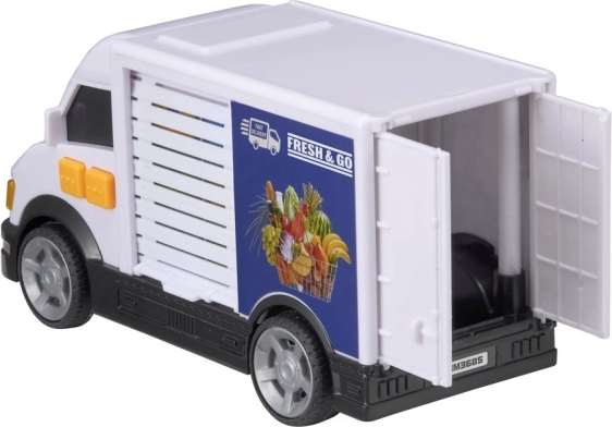 Tovorno vozilo ponuja luči in zvoke, ki ustvarjajo avtentično izkušnjo dostavne službe.