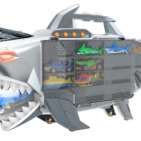Podajte se na pustolovščino z morskopasjim prevoznikom, ki sprejme do 24 avtomobilčkov in ponuja luči, zvoke ter odpirajoče se čeljusti. Zahvaljujoč ročaju in kolesom je enostaven za prenašanje, ne manjkata niti hitrostna rampa in izstreljevalnik raket ter bogati dodatki za takojšnjo igro.