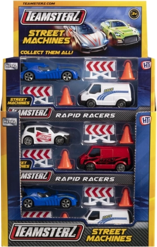 Modeli iz serije Street Machines izstopajo s tlačno lito karoserijo, trpežno izdelavo in gladko vožnjo. Komplet vključuje tudi 2 prometna stožca in 2 usmerjevalni zapori za še bolj realistično igro. Na voljo v različnih barvah in slogih (asortiment).