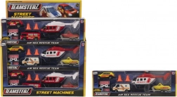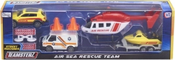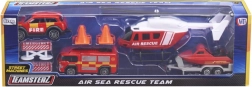 Komplet Teamsterz Reševalna ekipa air & sea spremeni otroško sobo v akcijsko območje polno drznih misij. Zelo podrobna vozila s kovinsko karoserijo in plastičnimi dodatki prenesejo intenzivno igro, zahvaljujoč prosto tekočim kolesom pa se gladko premikajo po katerikoli površini. Helikopter z ročno vrtljivimi listi vsaki reševalni akciji doda pravi realističen učinek.
