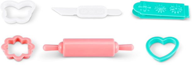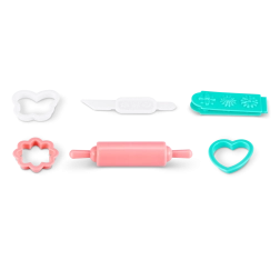 V paketu je 30 praktičnih dodatkov, kot so modelčki za peko, valjar in različne dekoracije, ki spodbujajo razvoj fine motorike, domišljije in igre vlog. Set je odlično darilo za otroke, ki radi ustvarjajo in se igrajo pekarko.