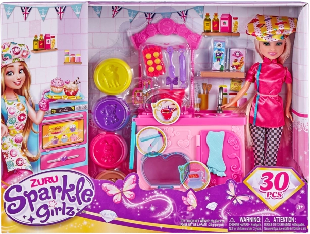 Igralni set Sparkle Girlz pekarka je idealen za male slaščičarke in peke, ki obožujejo kuharske pustolovščine. Punčka je pripravljena na peko, z bogatim naborom dodatkov pa lahko otroci posnemajo resnične kuhinjske dejavnosti – od valjanja testa do okraševanja ustvarjenih dobrot.