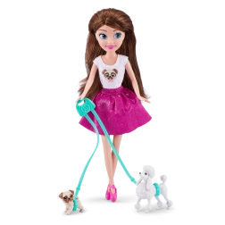 Ta modna punčka Sparkle Girlz je odlična izbira za otroke, ki imajo radi živali in domišljijske igre. Zahvaljujoč dvema kužkoma in dvojnemu kompletu povodcev lahko uživajo v skupnih sprehodih, negi in številnih zgodbah.