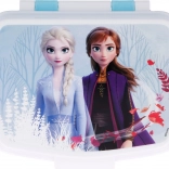 Praktična in stilska škatla za malico z motivom Frozen 2 bo razveselila vsakega malega oboževalca. Izdelana je iz odpornega materiala, ki prenese vsakodnevno uporabo, in ne vsebuje BPA. Zaradi dekorja na pokrovu in uradne licence jo bodo otroci vzljubili za pot v šolo, na igrišče in na izlete.