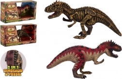 Ena stran realistični dinozaver, druga podrobno okostje – idealno za igro in učenje.