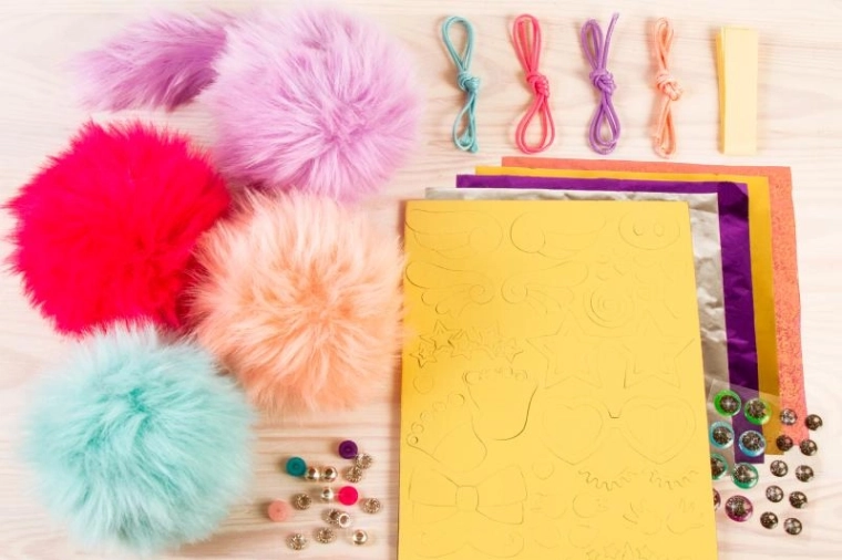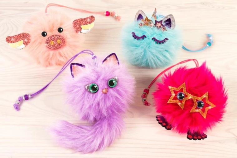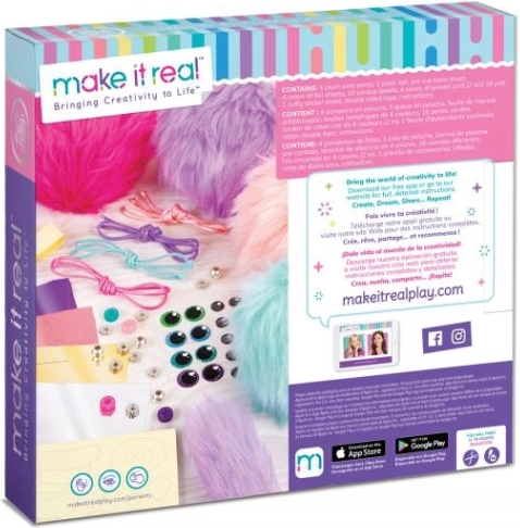 - Komplet vsebuje: 4 plišaste kroglice, plišast rep, penaste dodatke, oči, kroglice, 4 barvne folije, 4 barve voskanih vrvic (2 m), obojestranski lepilni trak, navodila