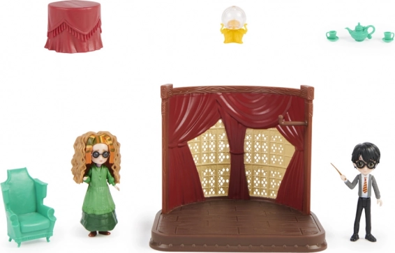 Ta čudovit igralni set vas popelje v čarobni svet Harryja Potterja. Ustvarite svoje lastne zgodbe s figuricami Harryja in profesorice Trelawney v učilnici vedeževanja. Magična kristalna krogla, ki spreminja barvo, dodaja edinstveno vzdušje vašim igram.