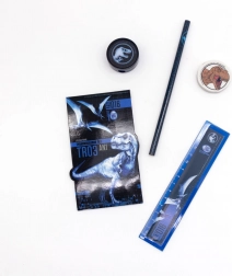Ta praktičen šolski set z licenciranim motivom Jurassic World bo razveselil vsakega ljubitelja dinozavrov. Kompaktni komplet nudi osnovne pripomočke za šolo in na pot, s katerimi boste imeli vse za pisanje, merjenje in drobne zapiske vedno pri roki.