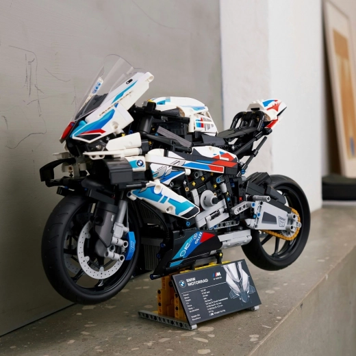 Ta model je prvi komplet v merilu 1:5 v seriji LEGO Technic in prinaša realistične funkcije, vključno z delujočim menjalnikom s tremi prestavami, krmiljenjem, sprednjim in zadnjim vzmetenjem, verižnim prenosom in vrstnim motorjem s štirimi bati. Z ikoničnim logotipom BMW in stojalom je popoln okras za vašo zbirko.