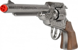 Srebrni revolver, ki je del seta, je osmokaliberni in bogato graviran, kar dodaja avtentičnost vsaki streljačini. Šerifova značka vas potem povzdigne v pravega stražarja zakonov.