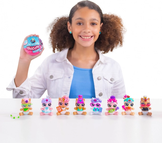 Odkrijte 5 Surprise Miminka Unicorn Squad blagovne znamke Zuru, ki vas popeljejo v čarobni svet zbirateljskih figuric. V notranjosti vsake krogle vas čakajo pet presenečenj, ki so idealna za deklice in dečke, ki radi razkrivajo skrivnosti in odkrivajo nove igrače: