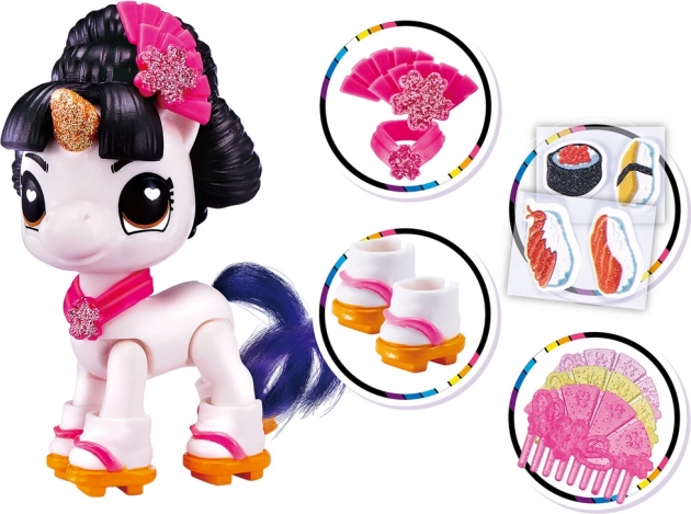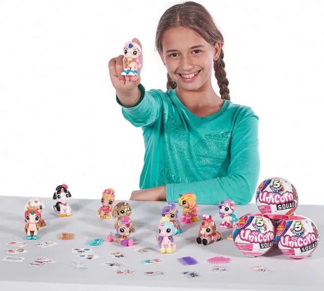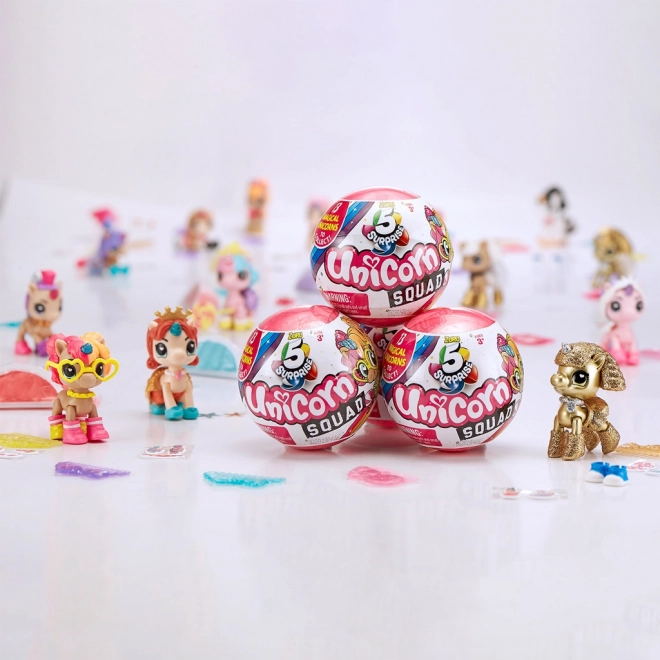 Edinstveni čarobni svet Unicorn Squad prinaša neskončno zabavo za male raziskovalce. V tem paketu boste našli pet skrivnostnih presenečenj, ki bodo postala del vaše zbirke. Vsaka krogla je polna interaktivnih elementov, od figuric samorogov do stajliš dodatkov.