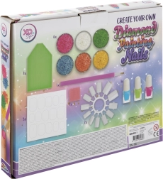 Nail studio Diamond – komplet vsebuje 3 lake za nohte, 6 barvnih samolepilnih kamenčkov, plastične nohte in nanosni čopič.